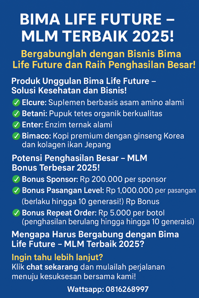 Industri MLM (Multi-Level Marketing) terus berkembang pesat, menawarkan peluang bisnis yang memungkinkan siapa saja untuk membangun penghasilan pasif dengan jaringan yang kuat. Salah satu MLM terbaik 2025 yang mendapatkan perhatian besar adalah Bima Life Future, sebuah platform bisnis yang tidak hanya menawarkan bonus terbesar, tetapi juga produk kesehatan unggulan dengan repeat order tinggi.
